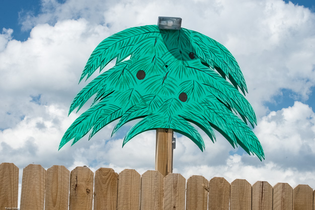 Fence and palm tree, Atlantic Beach