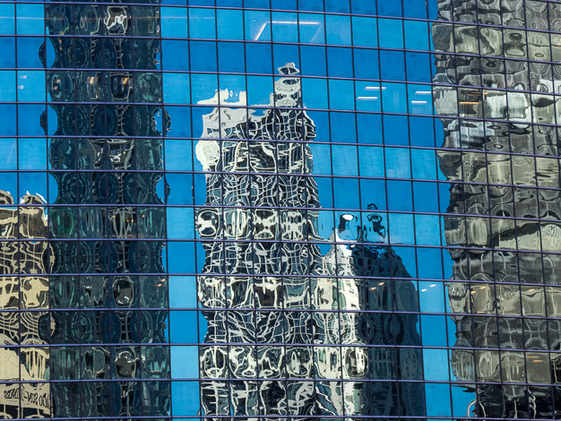 Buildings reflected in windows, Chicago