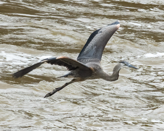Great blue heron in flight, North Carolina
